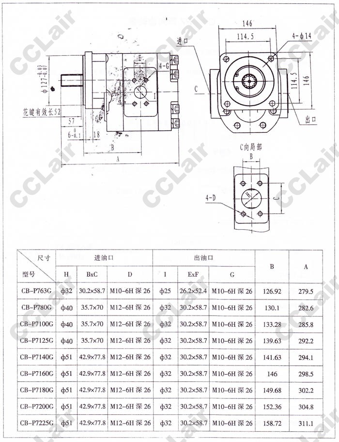 CB-P763G,CB-P780G,CB-P7100G,CB-P7125G,CB-P7140G,CB-P7160G,CB-P7180G,齒輪泵 YUCIYUKEN