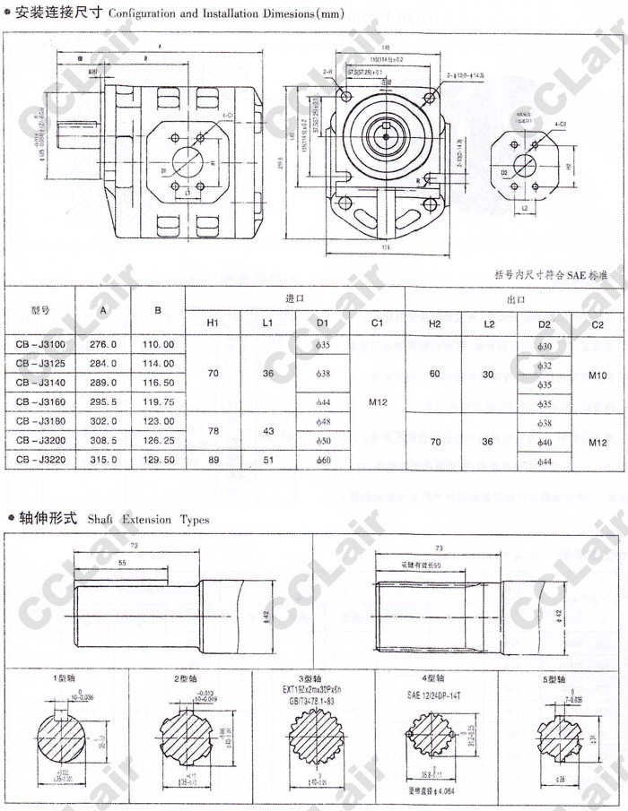 型號: CB-J3100,CB-J3125,CB-J3140,CB-J3160,CB-J3180,CB-J3200,CB-J3220,高壓齒輪油泵,YUCIYUKEN