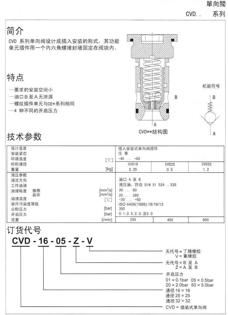 詳細信息 CVD-16-01,CVD-25-01,CVD-32-01,CVD-16-05,CVD-25-05,CVD-32-05,CVD-16-20,CVD-25-20,單向閥