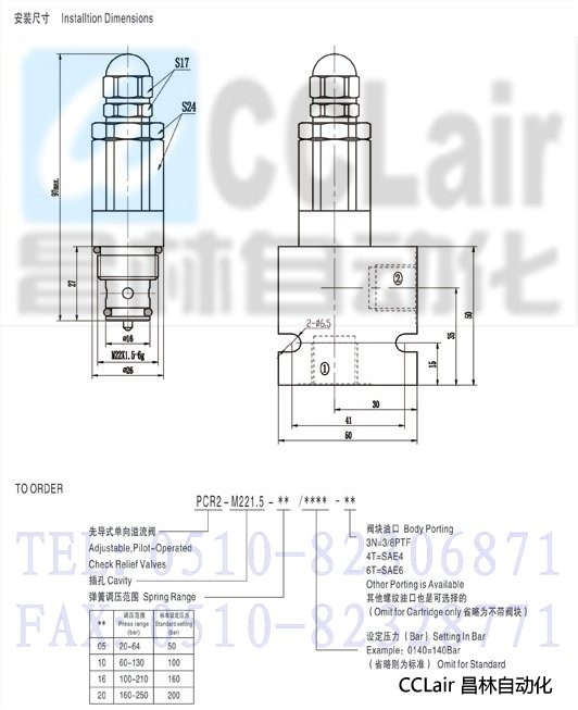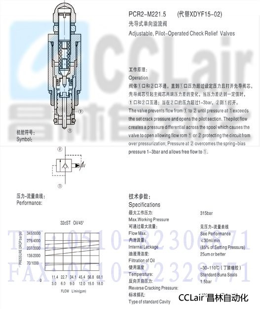 PCR2-M221.5,先導(dǎo)式單向溢流閥