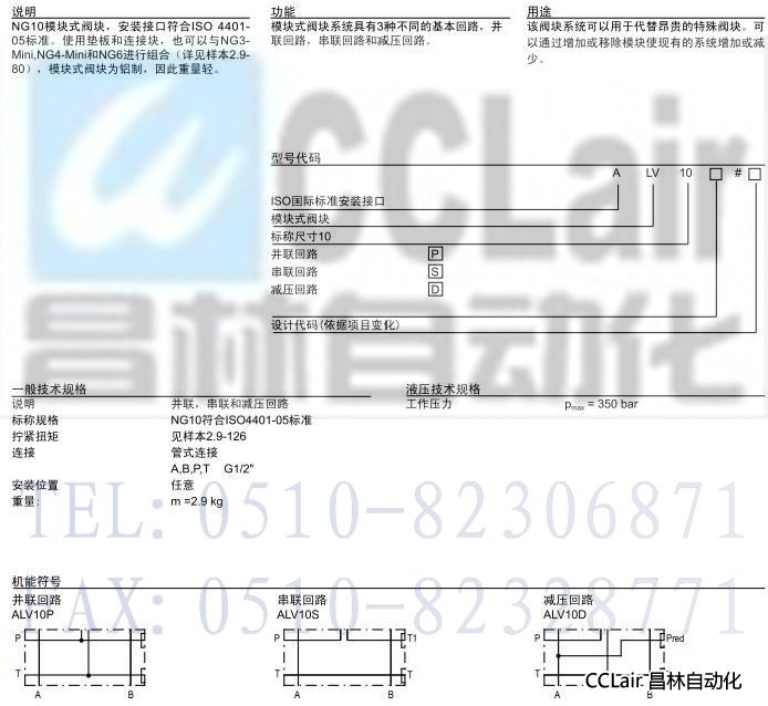 ALV10P,ALV10S,ALV10D,模塊式閥塊、
