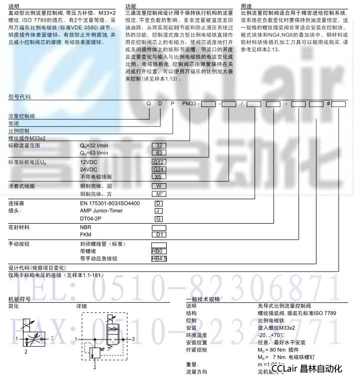 詳細(xì)信息 QDPPM33,插裝式比例 3-通流量控制閥(滑套式線圈)