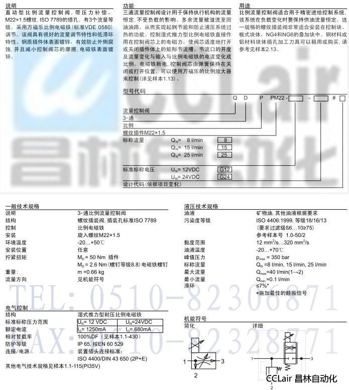 產品: 瀏覽次數(shù):781QDPPM22,插裝式比例 3-通流量控制閥
