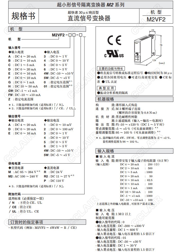 M2VF2,M2VF2-4W4W-R/CE,M2VF2-A,M2VF2-B,M2VF2-C,直流信號變換器(超快速30us響應(yīng)型)