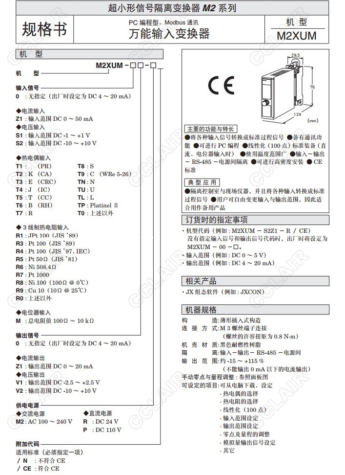 詳細(xì)信息 M2XUM,M2XUM-Z1 Z1,M2XUM-S1 Z1,M2XUM-S2 Z1,M2XUM-Z1 Z1,萬能輸入變換器(PC編程型、Modbus通訊)M2XUM-T1 Z1,M2XUM-T2 Z1,M2XUM-T3 Z1,M2XUM-T4 Z1,M2XUM-T5 Z1,