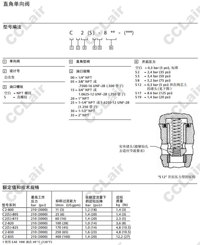 C2-800,C2-805,C2S-805,C2-815,C2S-815,C2-820,C2-800-S2,C2-800-S3,威格士-Vickers,直角單向閥