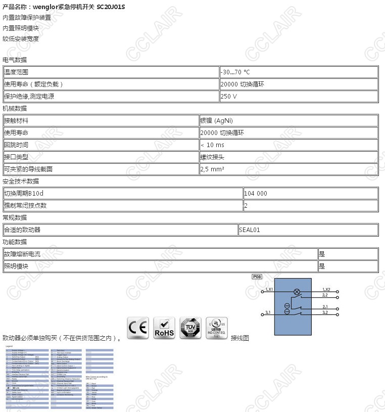 詳細(xì)信息 SC20J01S,wenglor緊急停機(jī)開關(guān)