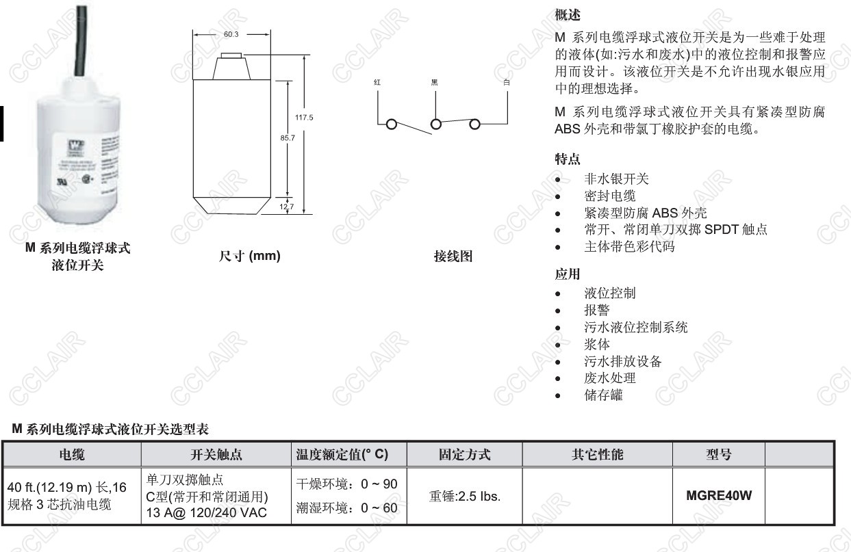 產(chǎn)品: 瀏覽次數(shù):1119MGRE40W,M電纜浮球式液位開關