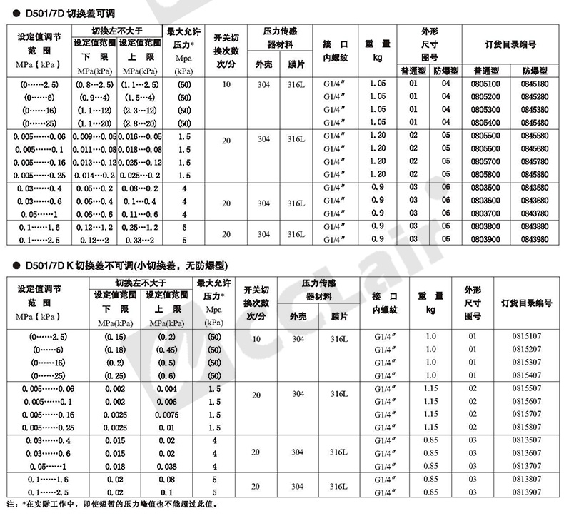 0821051 G1/4,0821077 G1/4,0821050 G1/4,壓力控制器 D505/8D切換差不可調(diào)