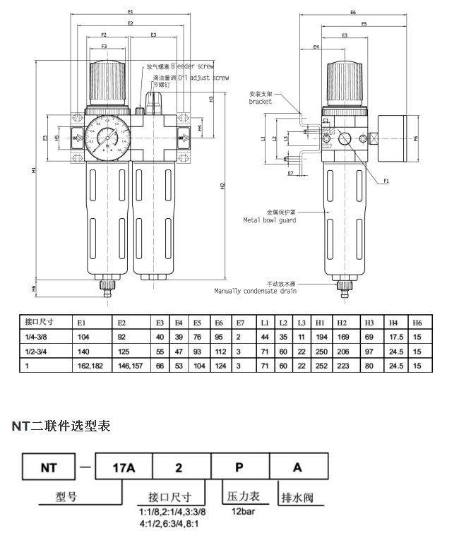NT-17A1PA,NT-17B2PA,NT-17A3PA,NT-17A4PA,NT-17A6PA,NT-17A8PA,NEUTEK氣動二聯(lián)件