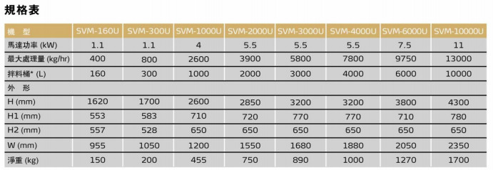 詳細(xì)信息 SVM-160U,SVM-300U,SVM-1000U,SVM-2000U,SVM-3000U,SVM-4000U,SVM-6000U,SVM-10000U歐化立式混合機(jī)