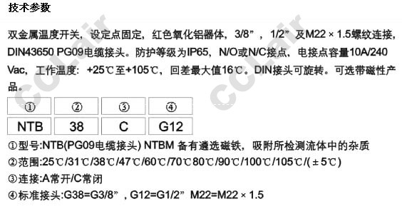 NTB38A,NTB60A,NTB70A,NTB80A,NTB90A,NTB100A,NTB105A,NTBM25A-G38,NTBM31A-G12,NTBM38A,雙金屬溫度開關(guān)