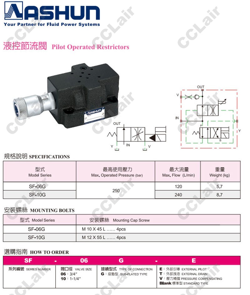 SF-06G-E,SF-06G-T,SF-06G-V,SF10G-E,SF-10G-T,SF-10G-V,ASHUN油順液控節(jié)流閥
