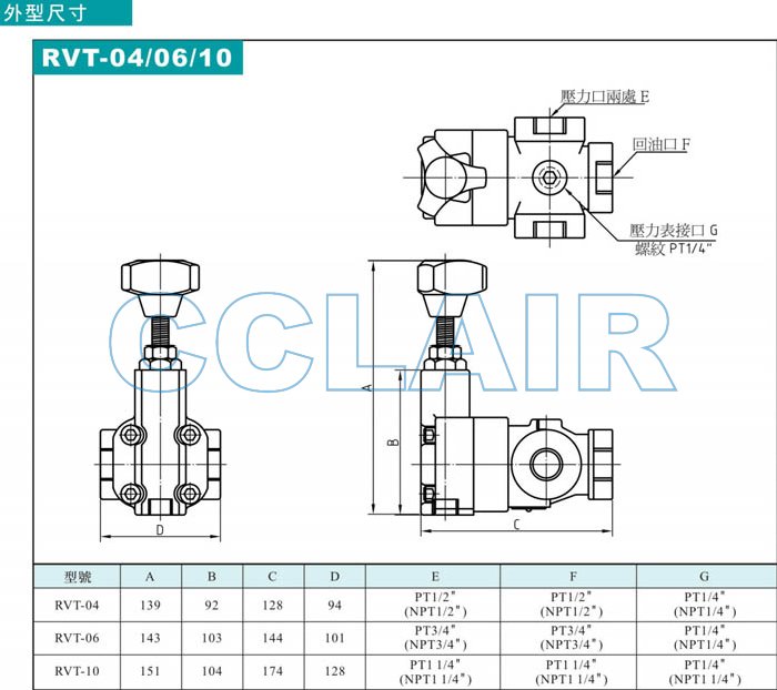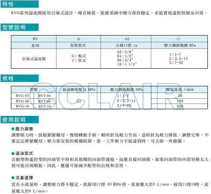 型號: RVG-03,RVG-04,RVG-06,RVG-10,RVT-03,RVT-04,RVT-06,RVT-10,引導式溢流閥