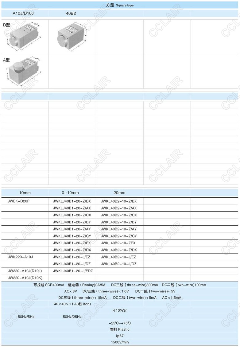 型號(hào): JWEK-D20P,​JWKLJ40B1-20-Z/BX,​JWKLJ40B1-20-J/EDZ,​JWKLJ40B2-10-J/DZ,​接近開關(guān)