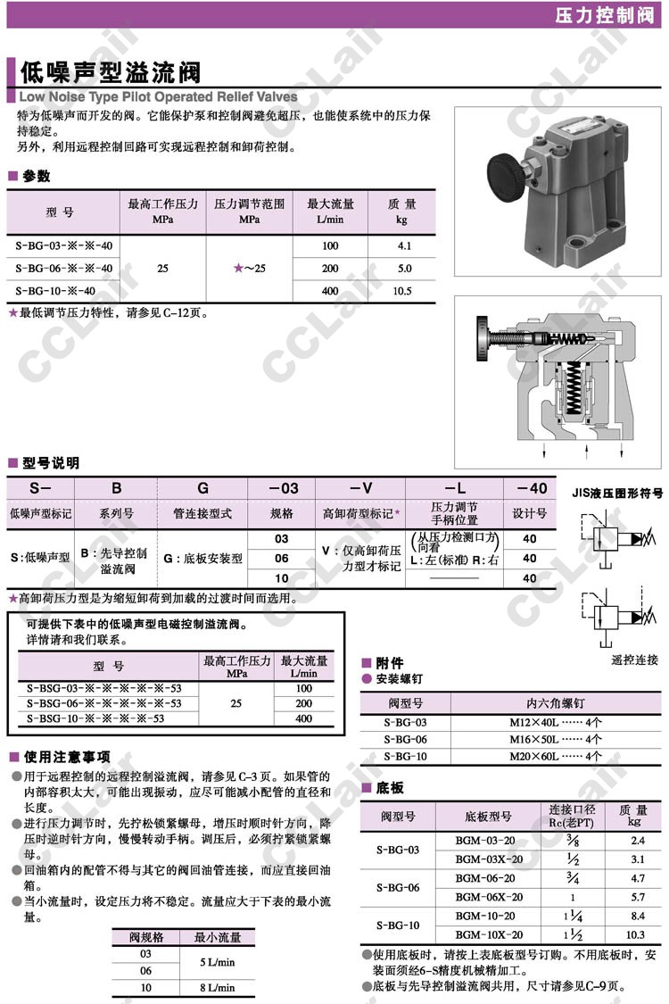S-BG-03,S-BG-06,S-BG-10,S-BG-03-V-L-40,S-BG-03-V-R-40,低噪聲型溢流閥