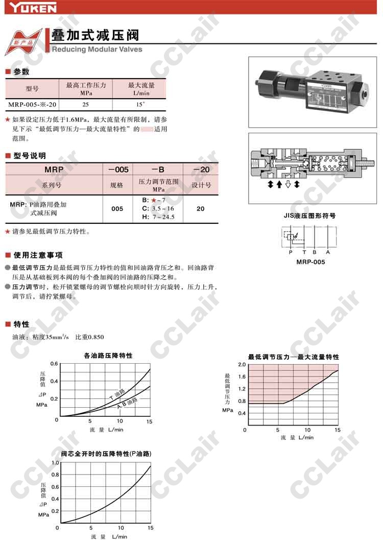 詳細信息 MRP-005-B-20,MRP-005-C-20,MRP-005-H-20,疊加式減壓閥,YUCIYUKEN榆次油研