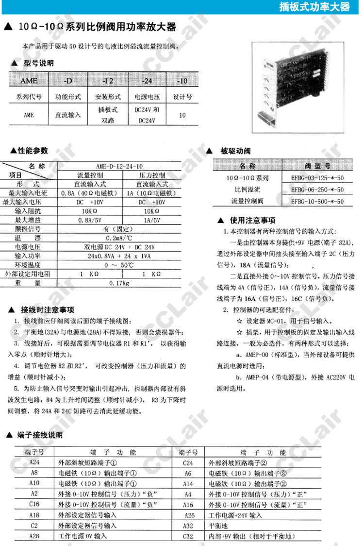 詳細信息 AME-D-12-24-10,比例閥用功率放大器,YUCIYUKEN榆次油研