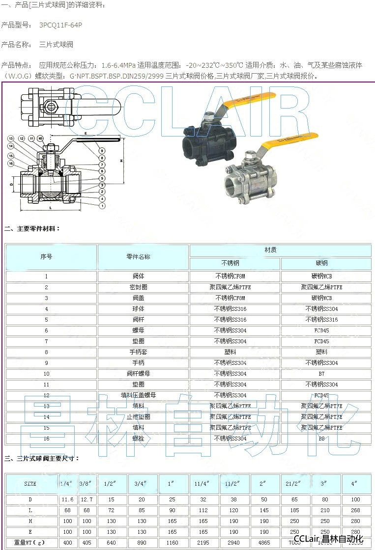 產(chǎn)品: 瀏覽次數(shù):6493PCQ11F-64P,三片式球閥