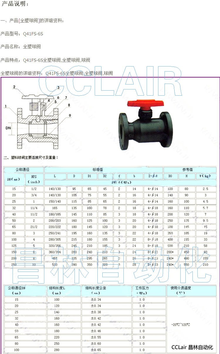 詳細信息 Q41FS-6S-DN15,Q41FS-6S-DN20,Q41FS-6S-DN25,Q41FS-6S-DN32,全塑球閥
