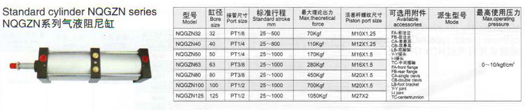詳細信息 NQGZN32,NQGZN40,NQGZN50,NQGZN63,NQGZN80,NQGZN100,NQGZN125,氣液阻尼缸