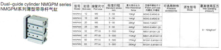 NMGPM12,NMGPM16,NMGPM20,NMGPM25,NMGPM32,NMGPM40,NMGPM50,NMGPM63,薄型帶導(dǎo)桿氣缸