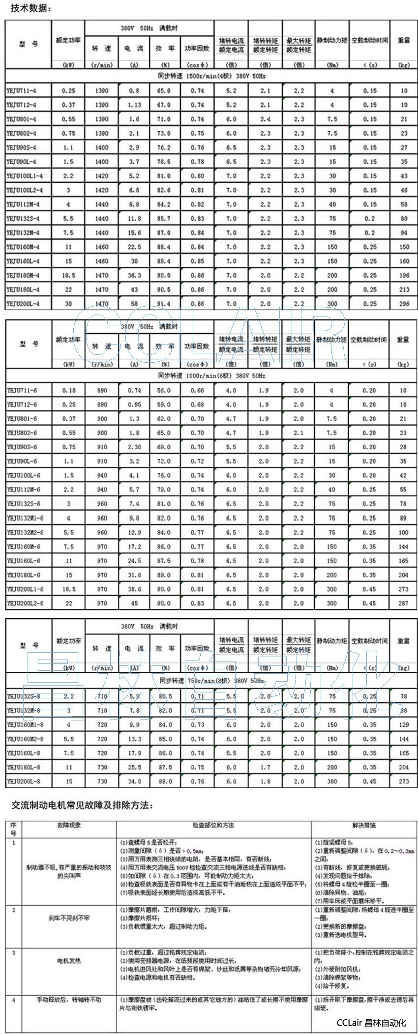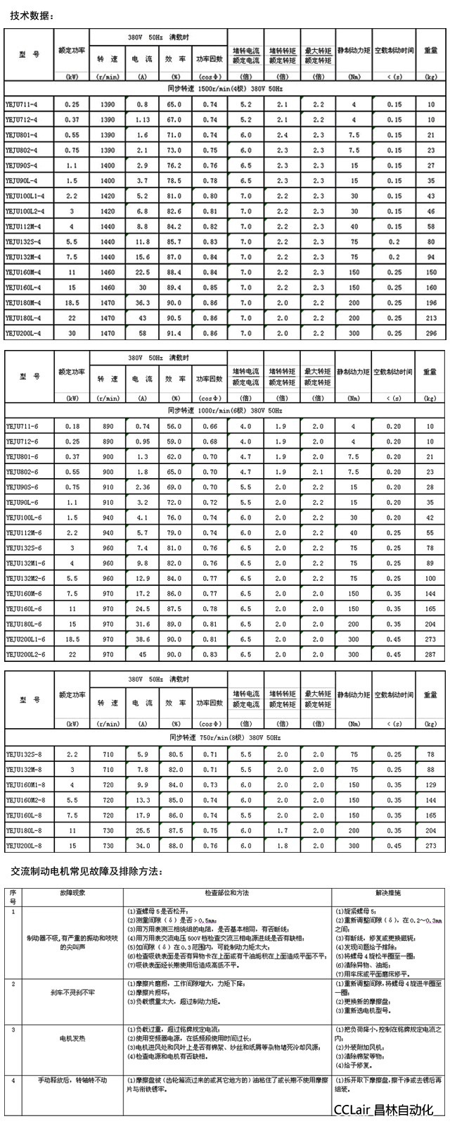2、額定電壓380V 50Hz(交流制動器與電動機(jī)相同);
