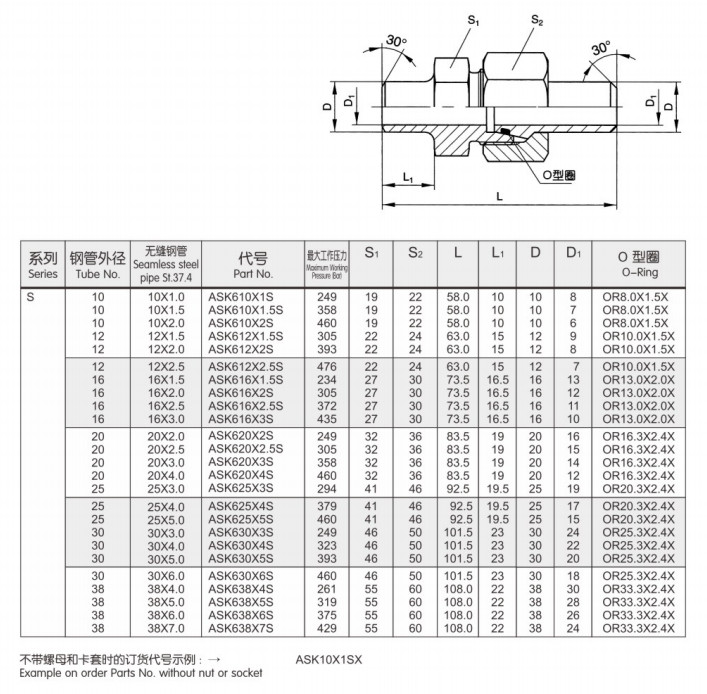 ASK610*1S,ASK612*1.5S,ASK616X1.5S,ASK620X2S,ASK630*3S,直通焊接接頭