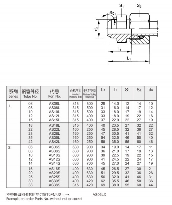 AS06L,AS08L,AS10L,AS12L,AS15L,AS18L,AS22L,AS28L,AS35L,AS42L,焊接式接頭 詳細信息 AS06L,AS08L,AS10L,AS12L,AS15L,AS18L,AS22L,AS28L,AS35L,AS42L,焊接式接頭