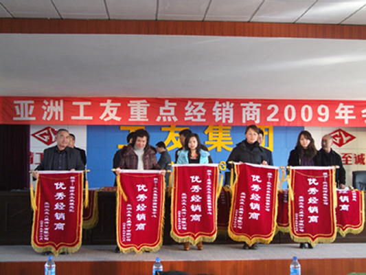 12月7日,工友集團(tuán)隆重召開2009年重點(diǎn)經(jīng)銷商大會(huì),來自全國(guó)各地80多家重點(diǎn)經(jīng)銷商匯聚威海共話友誼,暢想未來。會(huì)議由總經(jīng)理羅壽平主持,董事長(zhǎng)董延偉、副總經(jīng)理李忠剛、副總經(jīng)理宋志敏到會(huì)并講話。