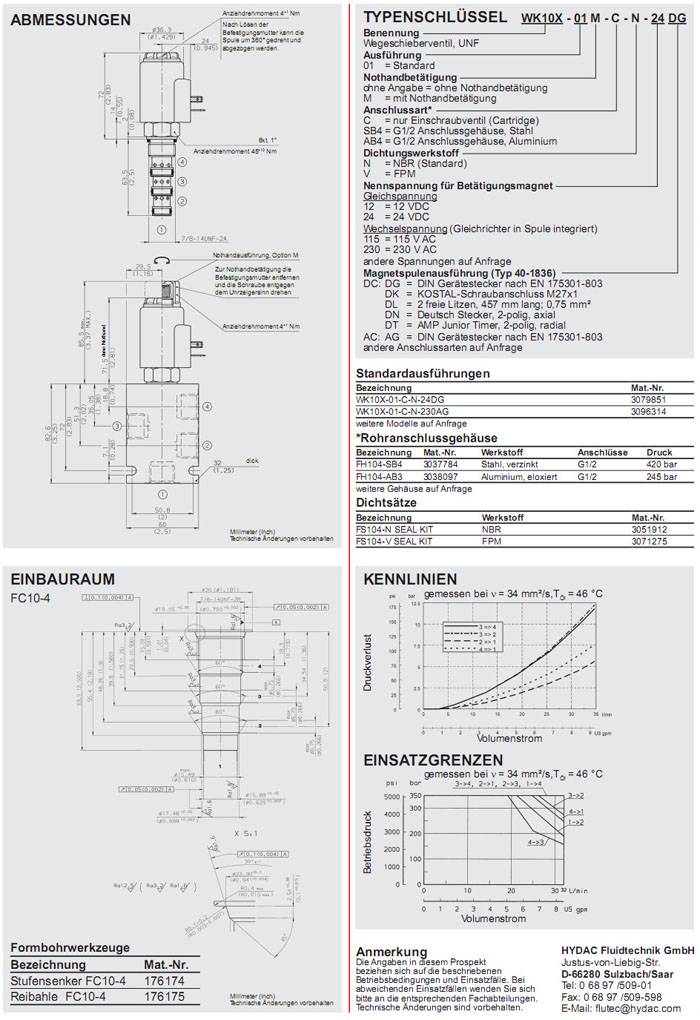 WK10X-01-C-N-24DG,WK10X-01-C-N-230AG,HYDAC電磁4/2方向滑閥