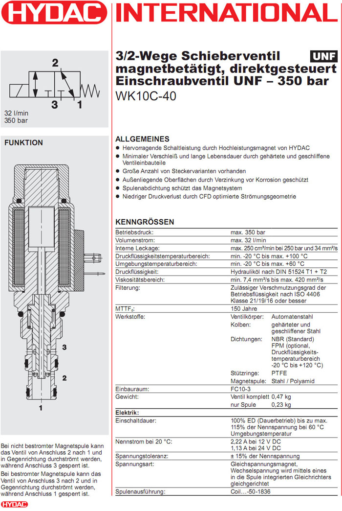 WK10C-40-C-N-24DG,WK10C-40-C-N-230AG,HYDAC二位三通方向滑閥