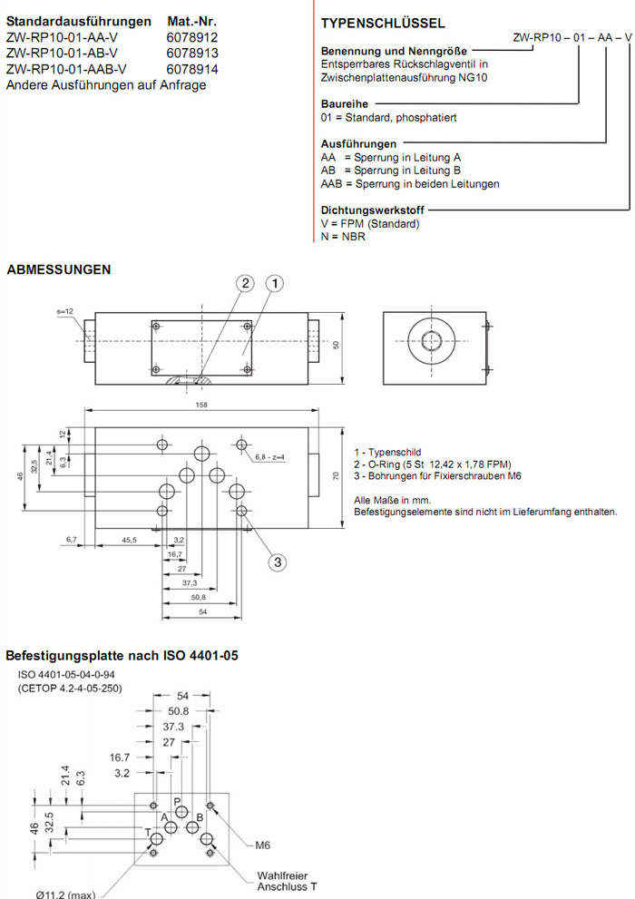 ZW-RP10-01-AA-V,ZW-RP10-01-AB-V,ZW-RP10-01-AAB-V,HYDAC止回閥