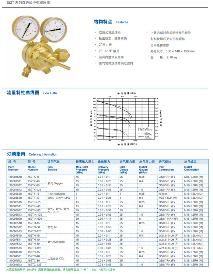 152TX-15,152TY-15,152TF-40,152TIN-15,152TQ-125,152TH-15,152TC-125,雙級式中型減壓器 |