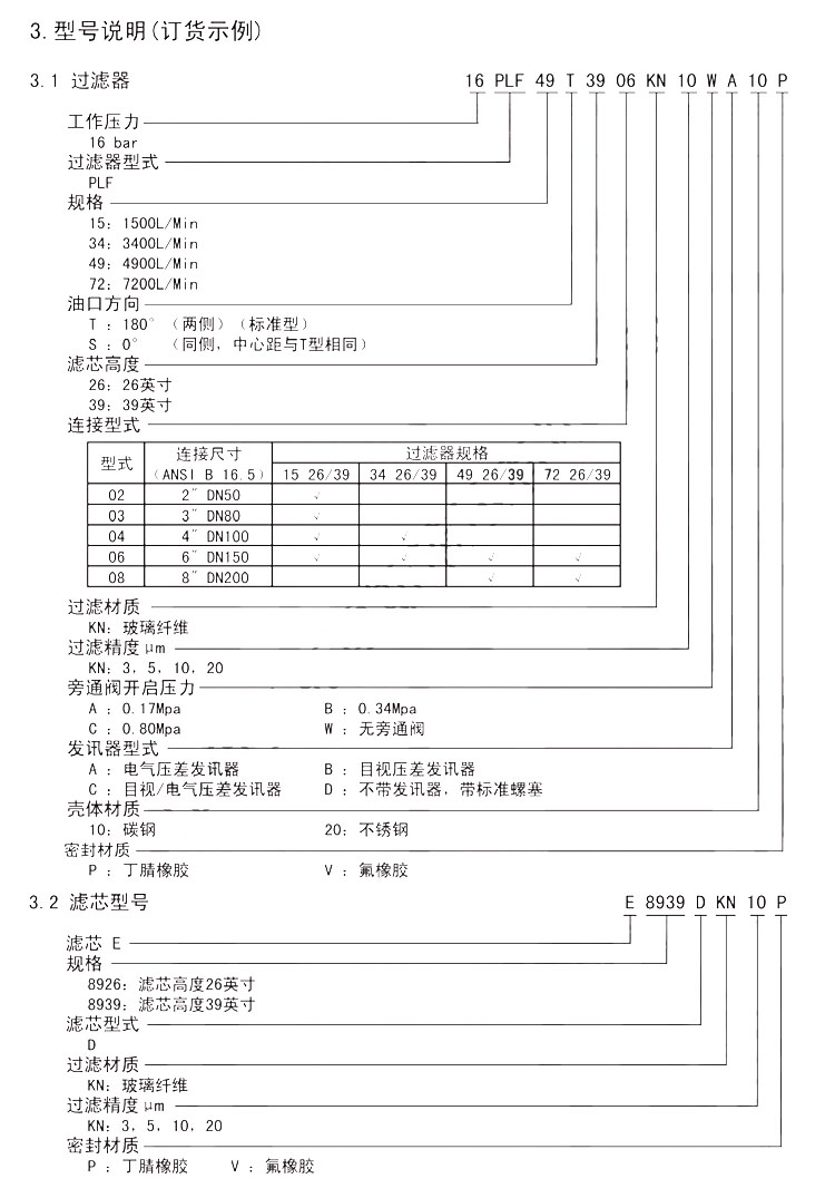 16PLF15,16PLF34,16PLF49,16PLF72,16PLF15T2602KN3,16PLF34T2604KN3,16PLF49T2608KN3,單筒管路過濾器 |