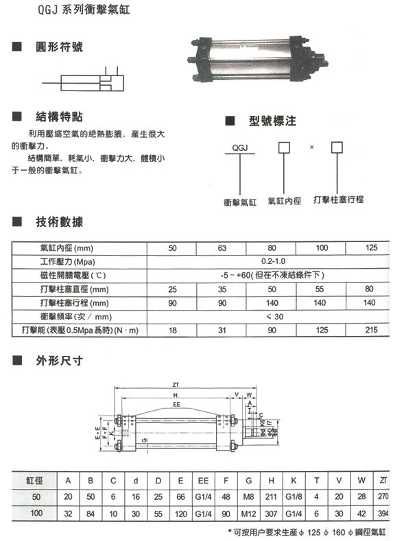 QGJ-50*90,QGJ-63*90,QGJ-80*140,QGJ-100*140,QGJ-125*140,沖擊氣缸 |