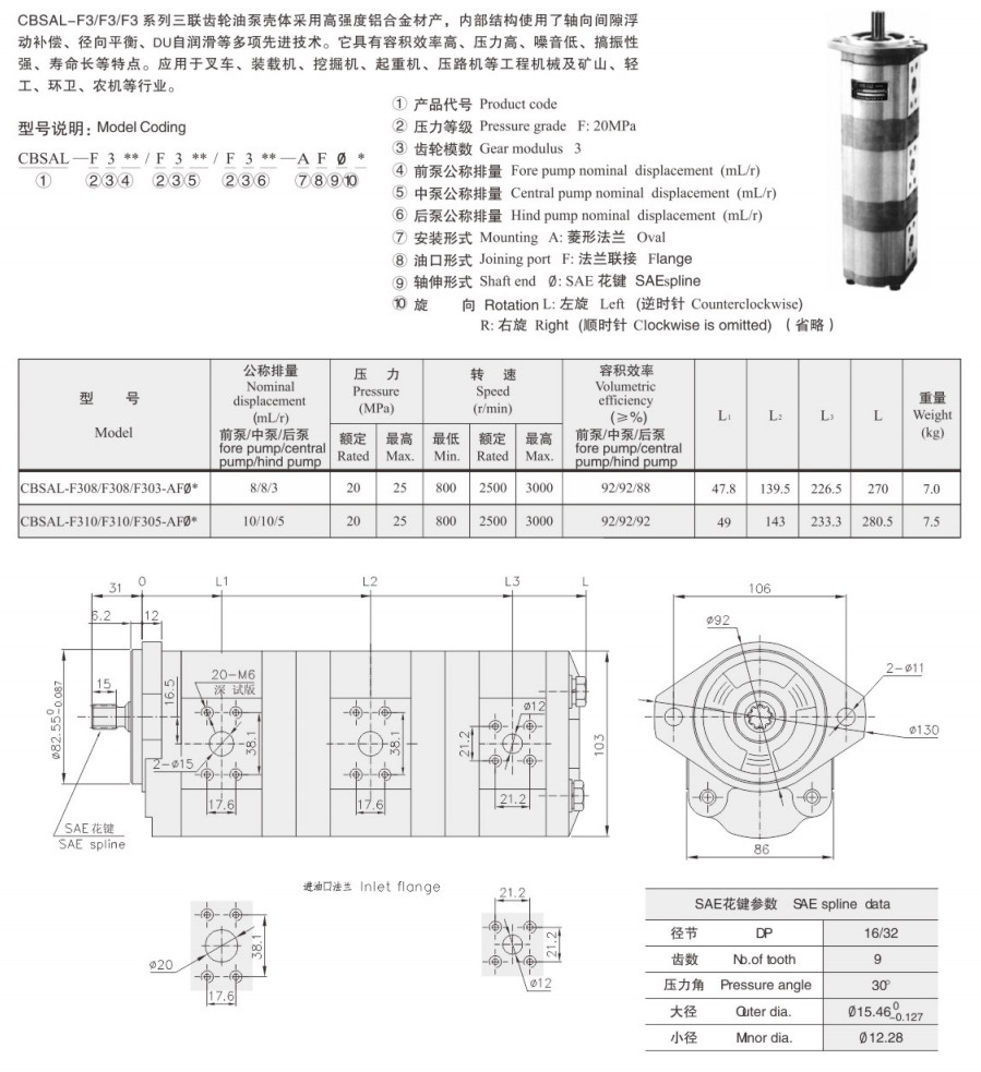 型號: CBSAL-F308/F308/F303-AF,CBSAL-F310/F310/F305-AF,三聯(lián)齒輪油泵