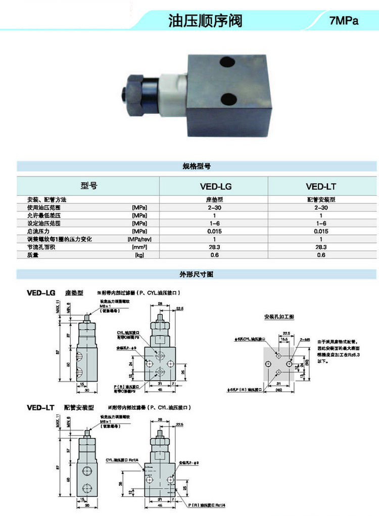 VED-LG,VED-LT,油壓順序閥