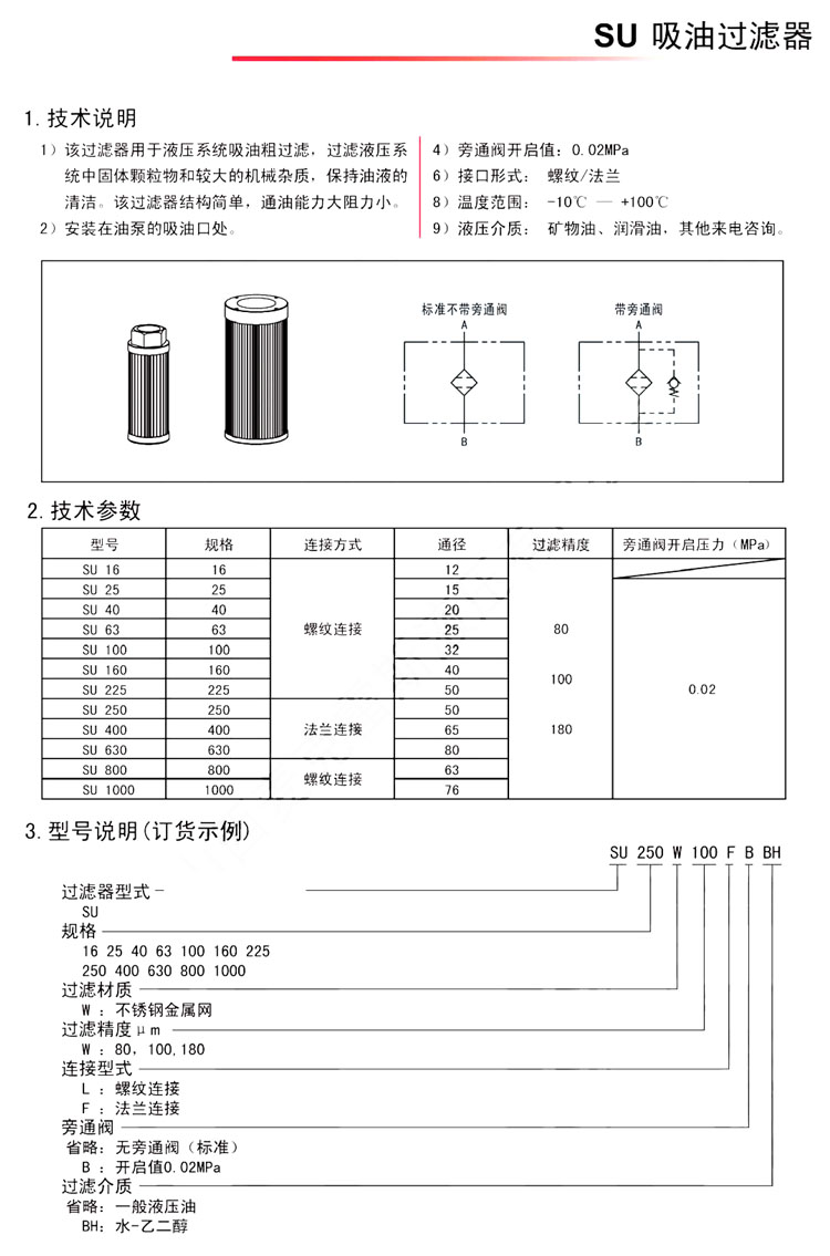 型號: SU16,SU25,SU40,SU63,SU100,SU160,SU225,SU250,SU400,SU630,SU800,SU1000,SU16W80LBBH,吸油過濾器