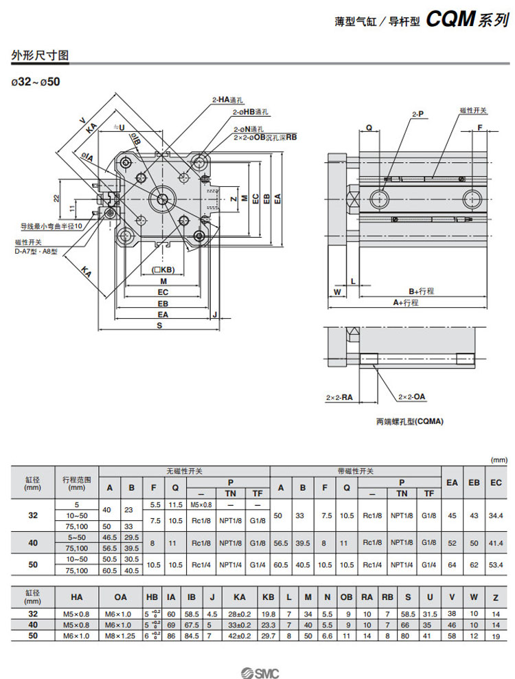 CQMA32-5,CQMA40-5,CQMA50-10,CQMA63-10,CQMA80-10,CQMA100-10,SMC薄型氣缸