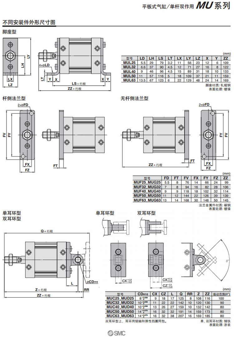 MUG25-10D,MUG25-15D,MUG25-20D,MUG25-25D,MUG25-30D,MUG25-35D,MUG25-40D,MUG25-45D,SMC平板式氣缸