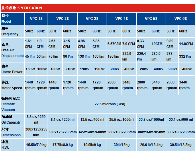 VPC-1S,VPC-2S,VPC-3S,VPC-4S,VPC-5S,VPC-6S,單級(jí)真空泵