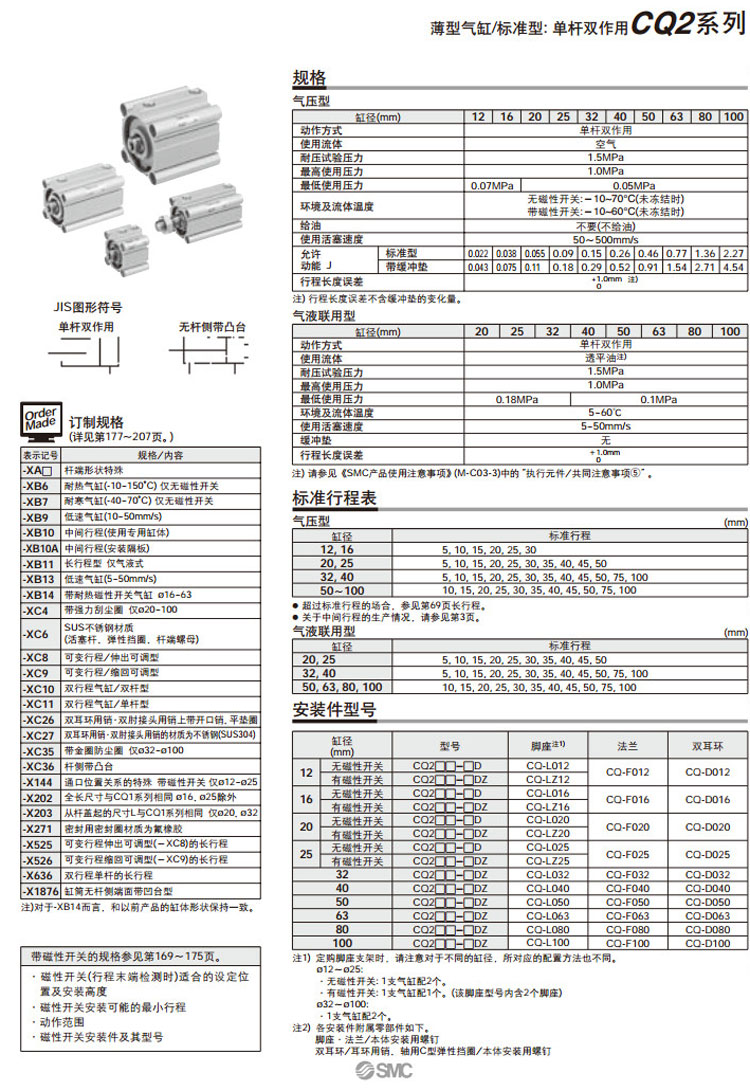 CQ2G20-40,CQ2G25-40,CQ2G32-40,CQ2G40-40,CQ2G50-40,CQ2G63-40,CQ2F80-40,CQ2G100-40,CQ2F80-75,CQ2F100-75,
