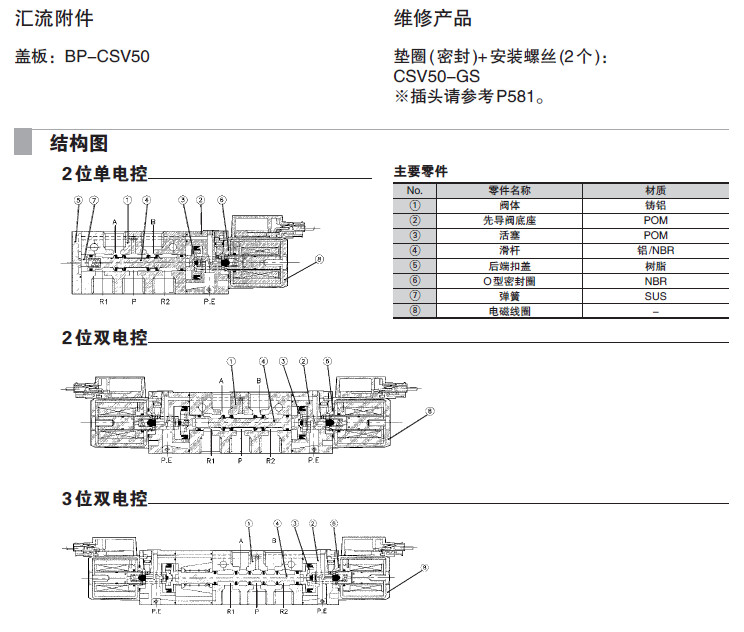 CSV51-1L,CSV52-2L,CSV53-4L,CSV54-1PS,CSV55-2PS,CSV51-4PS,5通先導式電磁閥