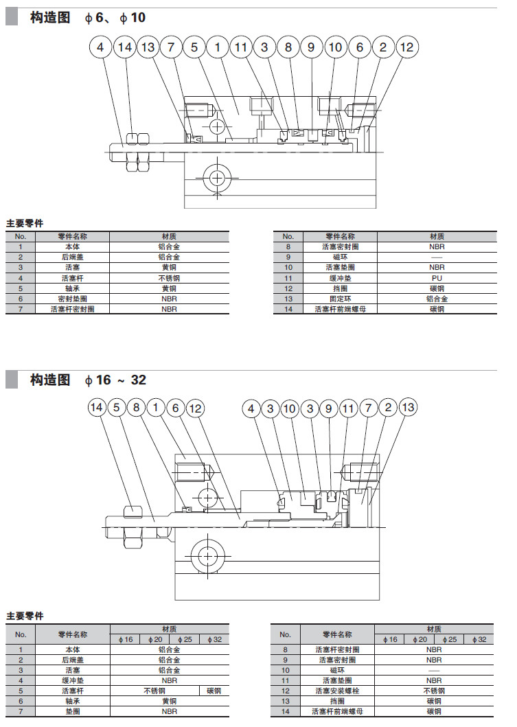 EM-11M-6,EM-11M-10,EM-11M-16,EM-11M-20,EM-11M-25,EM-11M-32,自由安裝型氣缸