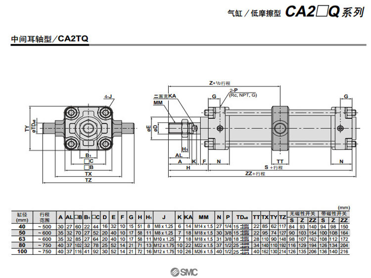 CDA2LQ80-700,CDA2LQ100-700,CDA2FQ80-700,CDA2FQ100-700,CDA2GQ80-700,CDA2GQ100-700,CDA2CQ80-700,CDA2CQ100-700,SMC低摩擦型氣缸