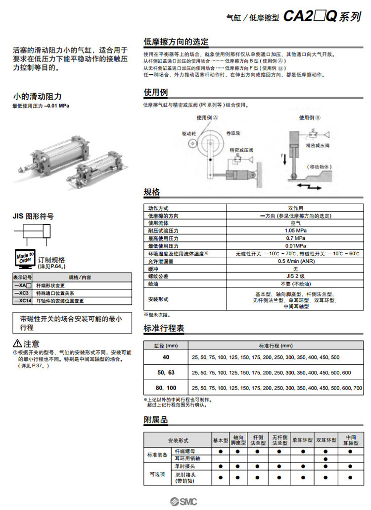 CA2BQ40-25,CA2LQ40-25,CA2FQ40-25,CA2GQ40-25,CA2CQ40-25,CA2DQ40-25,CA2TQ40-25,SMC低摩擦型氣缸