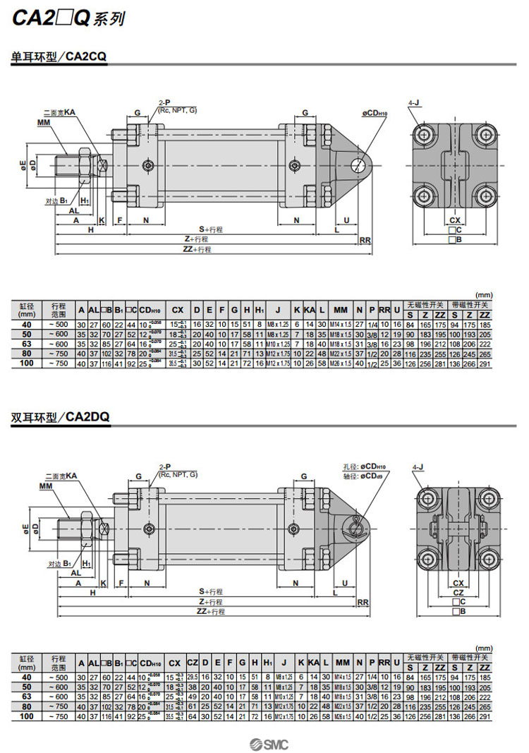 CA2DQ63-600,CA2DQ80-600,CA2DQ100-600,CA2TQ50-600,CA2TQ63-600,CA2TQ80-600,CA2TQ100-600,CA2BQ80-700,CA2BQ100-700,