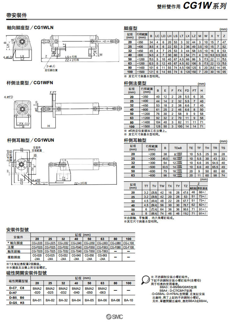 CDG1WBN20-25,CDG1WLN20-25,CDG1WBN20-25,CDG1WLN20-25,CDG1WFN20-25,CDG1WUN20-25,SMC雙桿雙作用氣缸