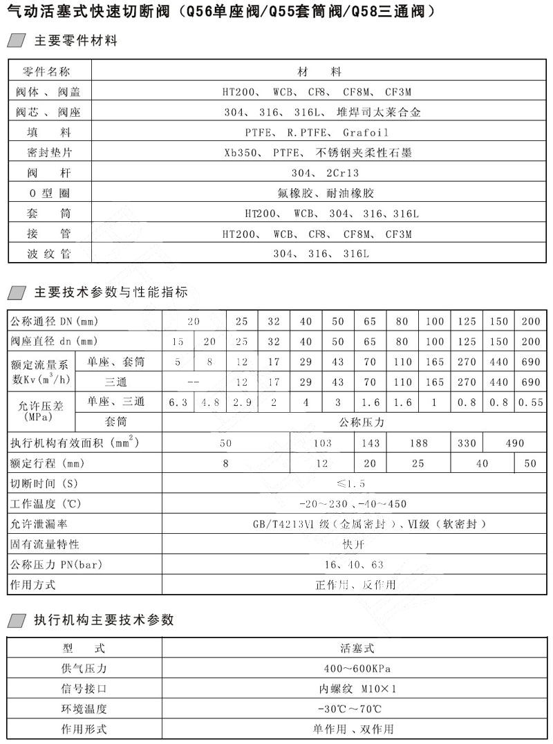 Q56-16C,Q56-63C,Q55-40C,Q55-63C,Q58-16C,Q58-40C,氣動(dòng)活塞式快速切斷閥